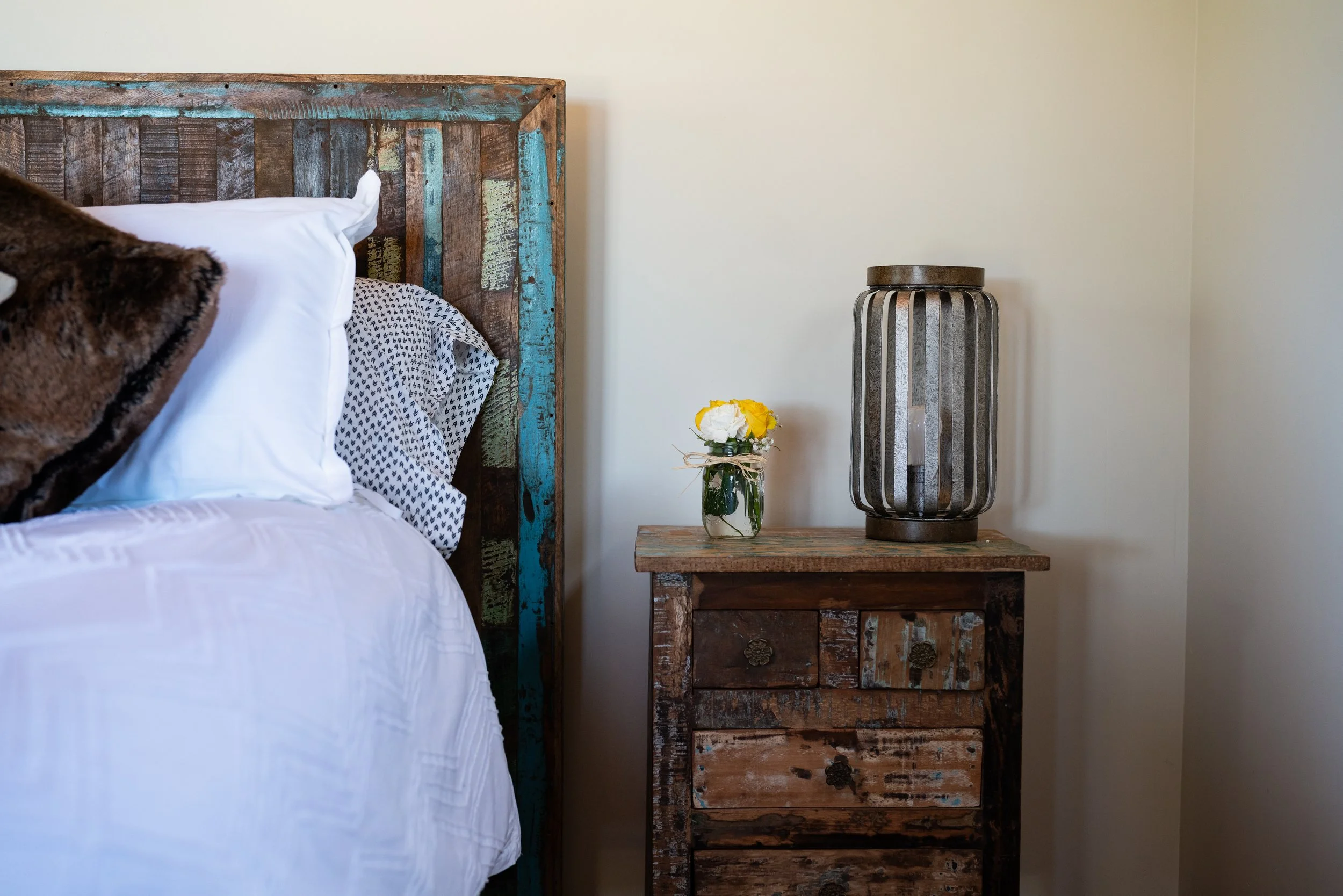 This cabin features a queen bed so you can go solo or choose to share a bed with a Goddess bestie! It also includes a private en suite bathroom with a connecting outdoor shower, super cozy bed, and thoughtful amenities.